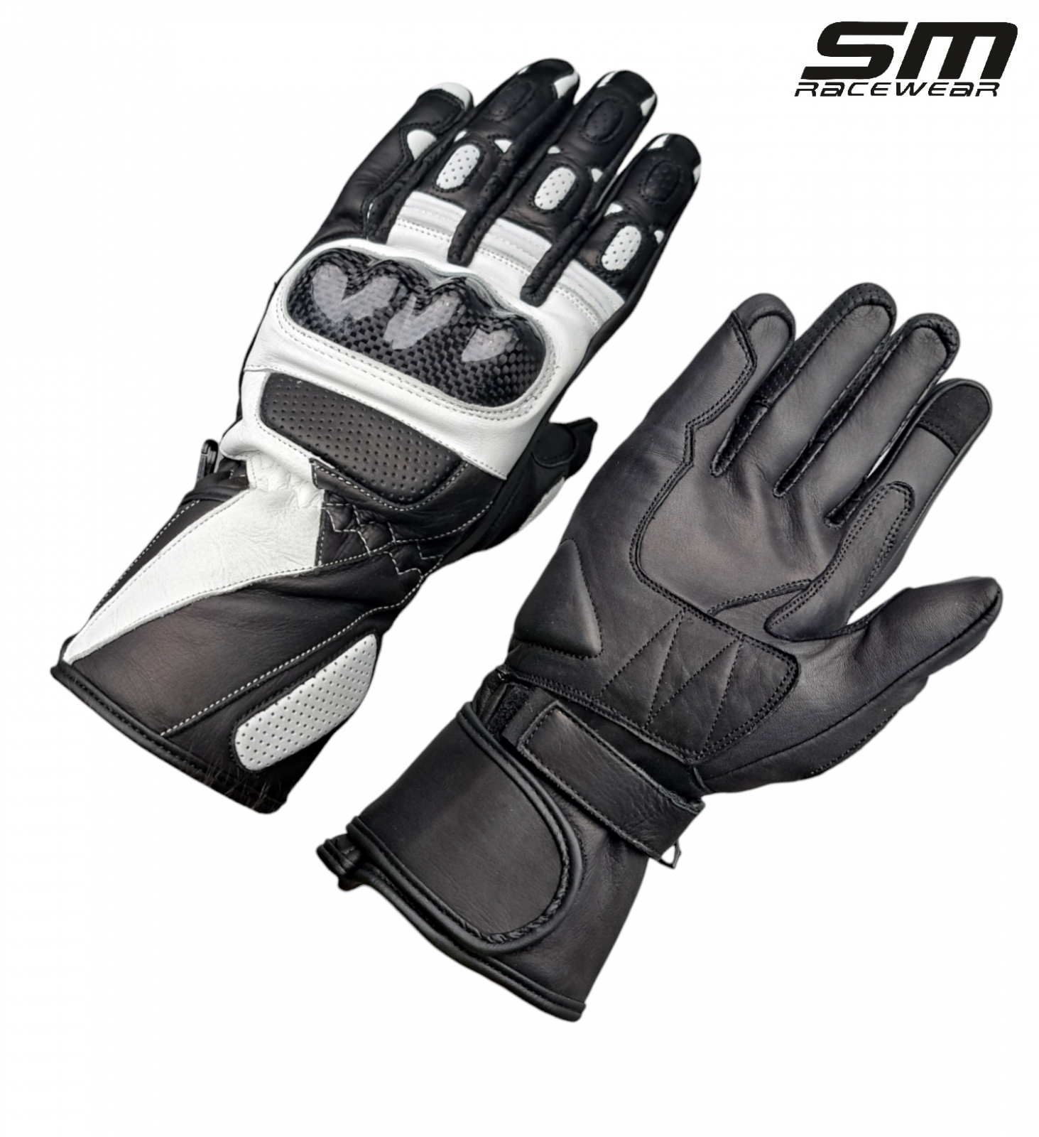 Motorcycle gloves made of natural leather SM Striker Long – White&Red or White&Black: